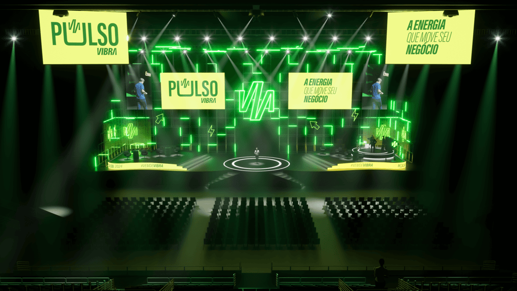 A convite da Agência Mandarin tive a oportunidade de desenvolver o design e a visualização 3D do palco para o evento Pulso Vibra 2024.